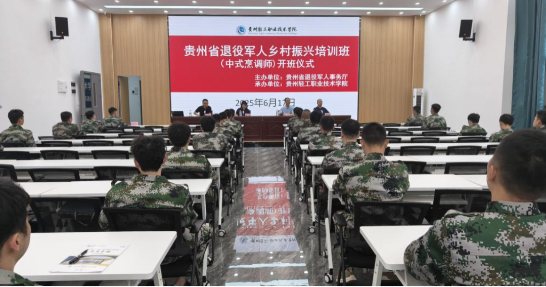 开班仪式上省退役军人事务厅就业创业处负责人号召全体学员发扬军人优良传统,做到“三个争当”:争当产业发展的“带头人”,挖掘贵州特色食材,推动黔菜品牌化;争当创业致富的“引路人”,通过“传帮带”帮助更多退役军人就业;争当乡村文明的“传播者”,以美食为媒介弘扬乡土文化。
