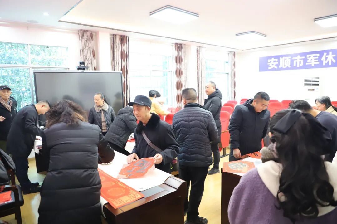 1月14日,安顺市退役军人事务局联合安顺市书法家协会、安顺市美术家协会在安顺市军队离退休干部休养所共同举办“送福送春联”活动。退役军人代表、军休干部等70余人参加。
