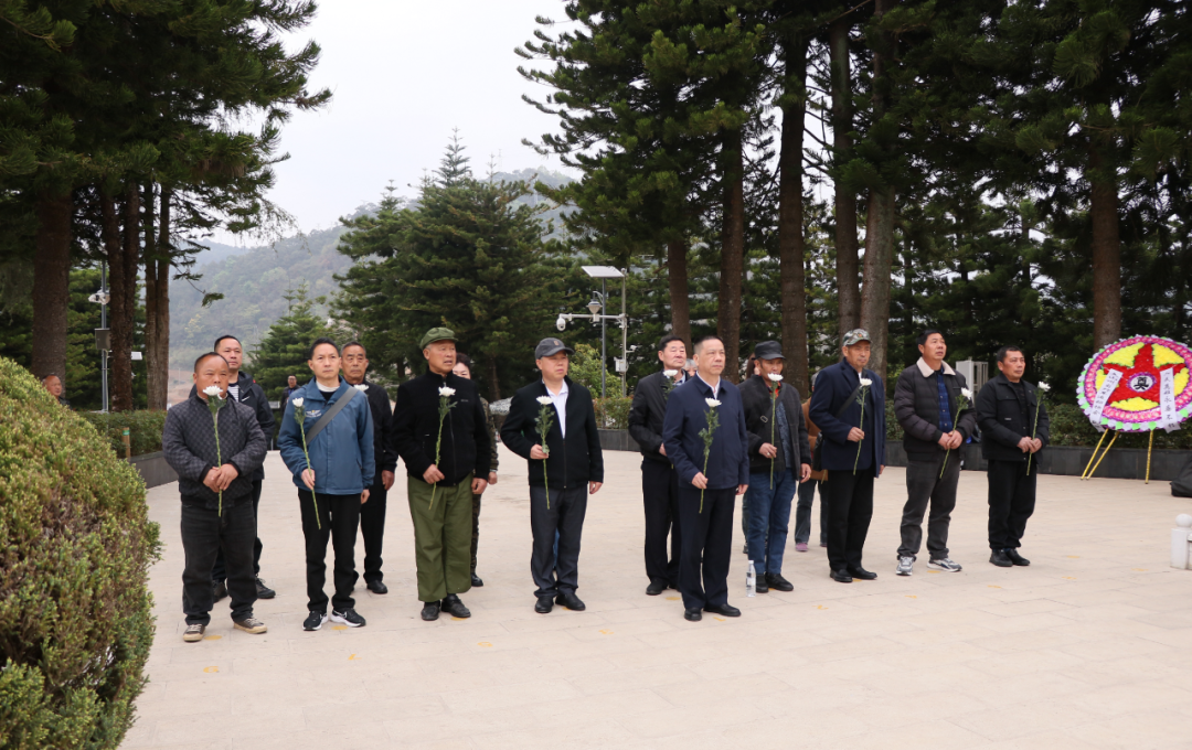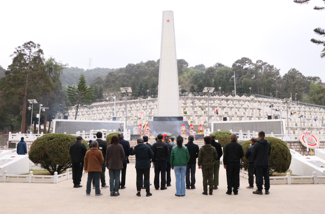 4月1日11时,麻栗坡烈士陵园举行祭扫仪式。青松翠柏间,全体人员肃立默哀、鞠躬致敬,向烈士纪念碑敬献花篮。省退役军人事务厅二级巡视员颜学伦在致辞中表达了对英雄烈士的深切哀悼和无尽的崇敬之情。